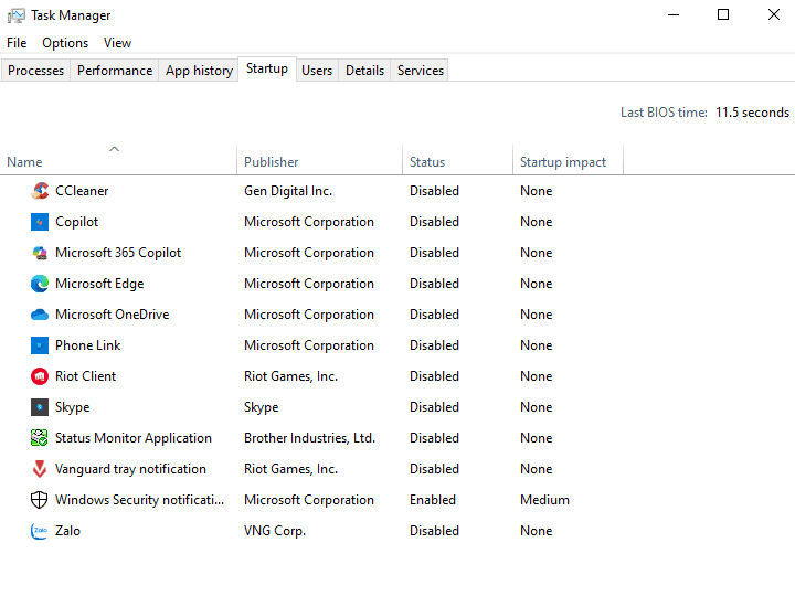 Quá nhiều chương trình khởi động khi bật máy sẽ khiến laptop chạy chậm. Hãy tắt bớt bằng Task Manager: